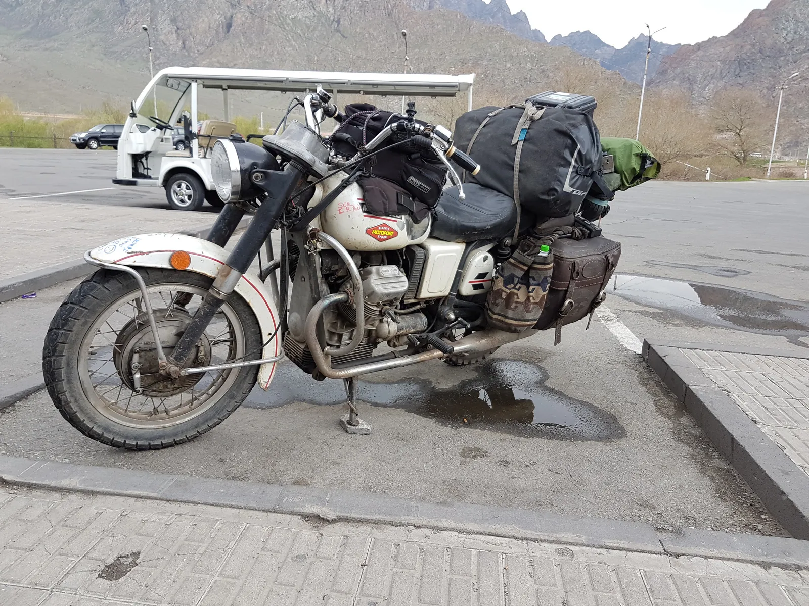 An der Grenze zum Iran begegnen wir dem ersten Motorradfahrer, der auch auf Reisen ist. Paul van Hooff, ein schreibender Holländer, der mit seiner Moto Guzzi im November (!) losgefahren ist, um die Welt zu erleben und zu erleiden (“ich muss leiden, weil die Leser etwas Besonderes wollen” - guzzigalore.nl).