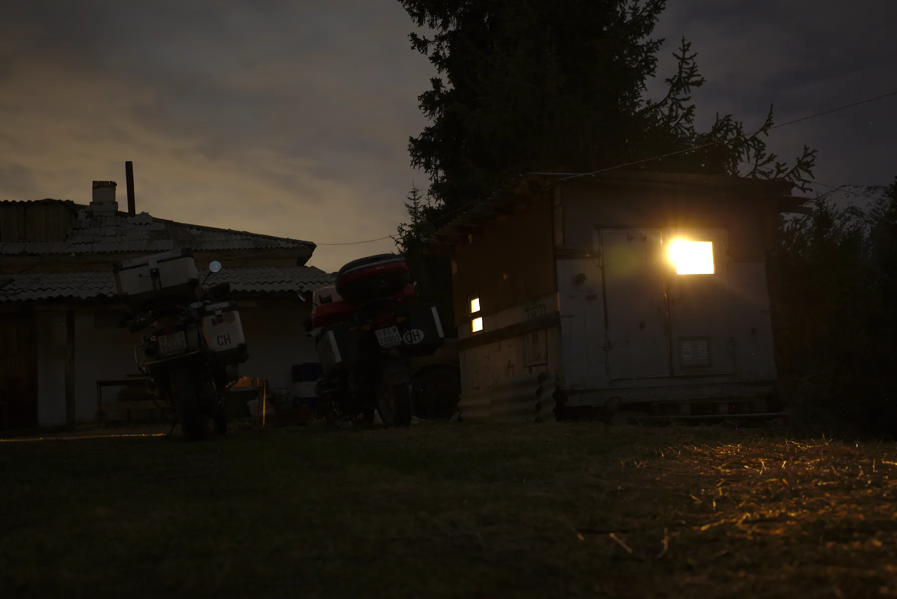 In der folgenden Nacht schlagen wir unser Zelt an einem Platz auf, der auch irgendwo im Emmental sein könnte: grüne Wiese, Bächlein und ein paar Stauden. Nur der nicht ganz einfache Austausch mit der Bauernfamilie bei Tee und Süssem erinnert uns daran, dass wir weit weg von zuhause sind.