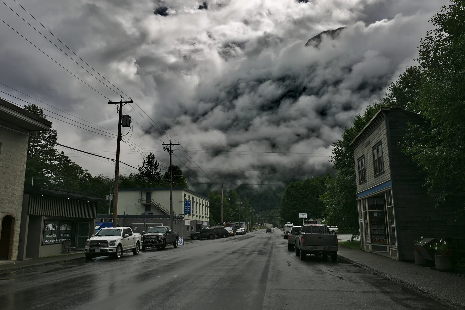 Im Süden von B.C. (British Columbia), ist das Wetter extrem heiss und trocken, sodass überall Waldbrände ausbrechen, teilweise Strassen gesperrt sind und zehntausende Menschen evakuiert werden. Alsbald ich wieder in die Nähe der Küste komme, wird das Wetter unberechenbar und vorallem für lange Zeit regnerisch. So entscheide ich mich zwei Mal in ein Hotel zu gehen, um die Sachen zu trocknen und mir eine bequeme Nacht zu gönnen. Das schlimmste ist, die nassen Motorradkleider vom Vortag, nach einer regnerischen Nacht im Zelt, wieder feucht anziehen zu müssen.