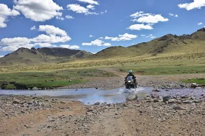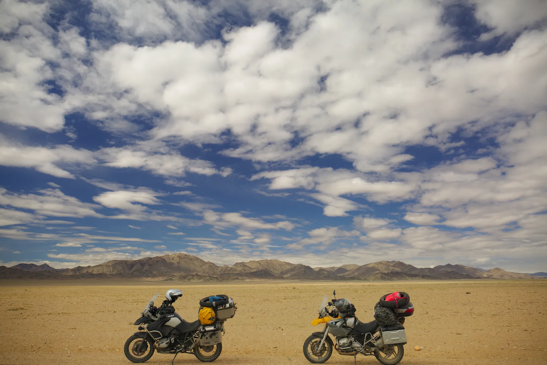 Vom Westen her führen drei grosse Routen nach Ulan Bator. Wir haben uns angesichts unseres engen Zeitplans und der Jahreszeit für eine Mischung zwischen südlicher und mittlerer Route entschieden, wo sich Teerstrassen mit Kies-, Sand- und Feldwegen abwechseln. Oft kann man nur erahnen, wo der Weg durchführt und man wählt selber eine Route durchs Gelände. Hin und wieder gibt es Gräben zu überwinden und Bäche zu durchqueren. Offroad-Spass und Anstrengung zugleich. In diesem anspruchsvollen Gelände hat sich gezeigt, weshalb BMW die 1200-er GS auch in einer stabileren Adventure-Ausführung herausgibt: während Janoschs Adventure die Herausforderungen fast problemlos meistert, kommt Günters GS an ihre Grenzen (neben der defekten Vorderradfelge sind jetzt auch das Topcase, der Gepäckträger und der linke Seitenkoffer weg). Genauso abwechslungsreich wie das Gelände sind auch unsere Übernachtungsmöglichkeiten: wunderschöne Zeltplätze, Jurtencamps und sagen wir mal ‘eher bescheidene’ Hotels.