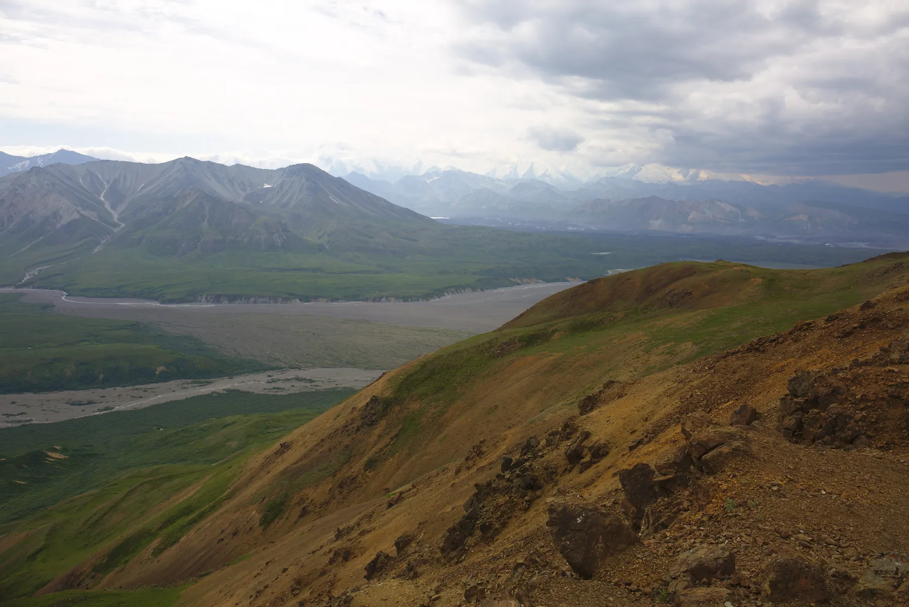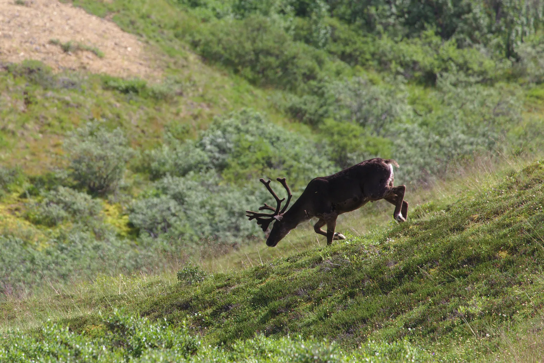 In den Park hinein geht es nur mit einem Bus - oder zu Fuss. Nach einer 4 stündigen Busfahrt mit einem sehr unterhaltsamen Busfahrer, komme ich im Eielson Visitor Center an. Ich entscheide mich für eine 2 stündige Wanderung, für welche ich knappe 50 Minuten benötige. Auf dem Bus zurück aus dem Park, treffe ich per Zufall wieder auf Stina und Kyle. So fahren wir gemeinsam zu Paul (Tent Space Map ;-)), wo wir auf ein weiteres Weltenbummler Paar stossen. Den Abend verbringen wir frischem Lachs (danke Paul) und tollen Motorradabenteur-Geschichten.