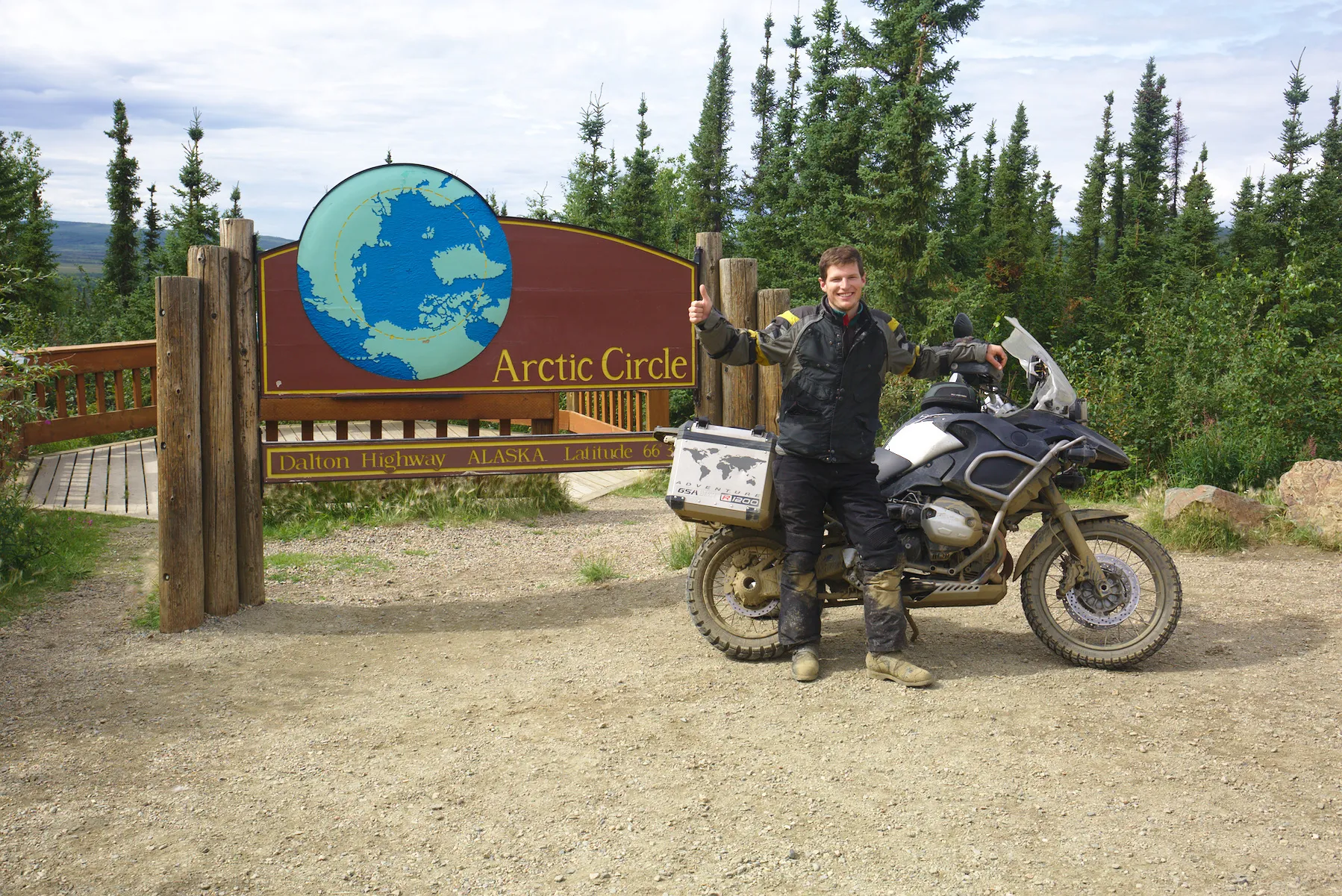 Am Abend darauf schlage ich mein Lager in Fairbanks auf, von wo aus ich in einem Tag auf dem Dalton Highway zum Polarkreis und zurück fahre. Der Polarkreis bezeichnet die nördlichsten 5° der Breitengrade. Mindestens einmal pro Jahr scheint hier 24h lang die Sonne resp. ist es für 24h dunkel. Eigentlich geht der Dalton Highway noch ca. 400km weiter in den Norden bis nach Prudhoe Bay, da es aber eine Einweg-Strasse ist, entscheide ich mich nicht den ganzen Dalton zu machen. Ein weiterer Grund ist, dass man am Ende nicht einmal mit dem arktischen Meer belohnt wird. Von Fairbanks aus geht es wieder in die altbekannte Richtung: Osten.